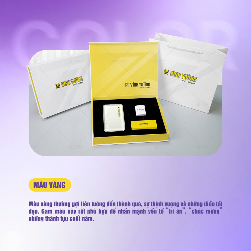 Màu vàng thường gợi liên tưởng đến ánh sáng, thành công và sự thịnh vượng. Trong bối cảnh quà tặng cuối năm, vàng mang thông điệp của sự ghi nhận và chúc mừng.