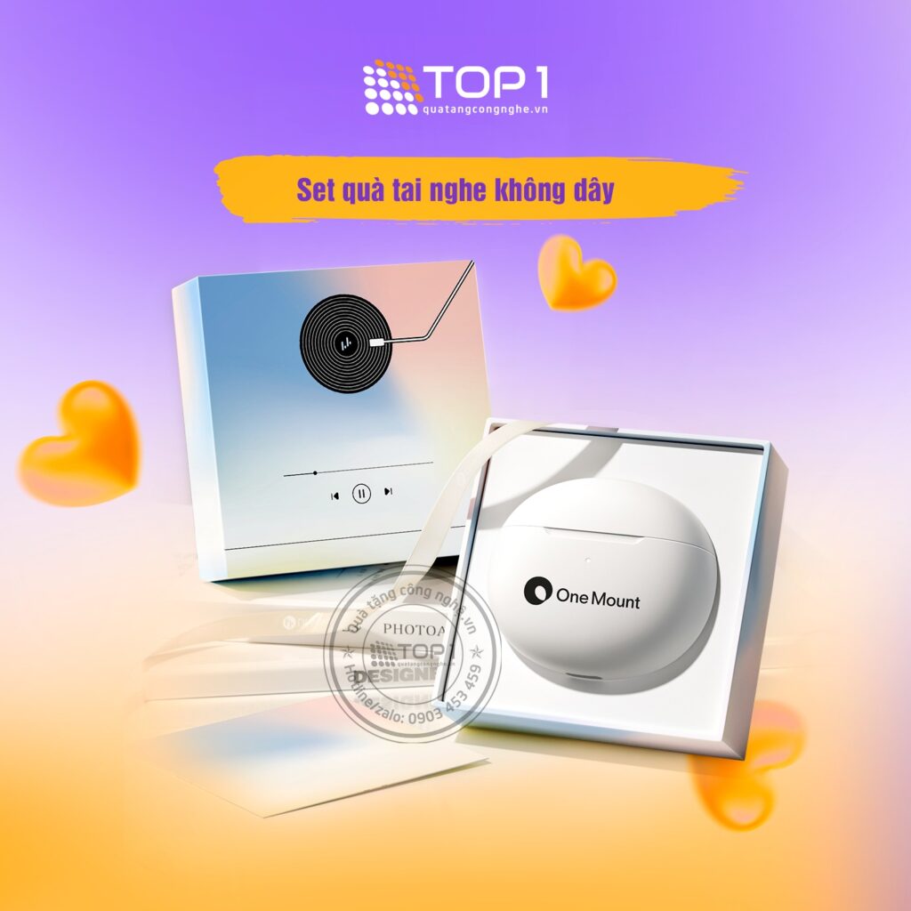 Set quà này mang phong cách trẻ trung và hiện đại, với nhân vật chính là chiếc tai nghe không dây hiện đại từ thương hiệu Remax. Hộp quà được thiết kế sáng tạo, phối màu tươi mới, vừa tinh tế vừa gần gũi, tạo cảm giác thích thú ngay từ cái nhìn đầu tiên.