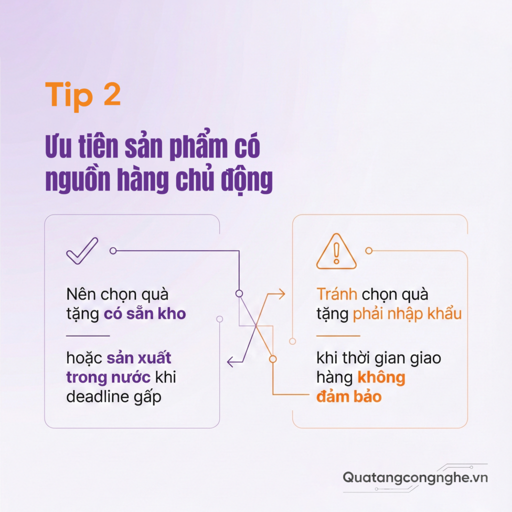 Chủ động thời gian giúp doanh nghiệp kiểm soát toàn bộ quy trình quà tặng Tết cho khách hàng, từ chất lượng đến chi phí.