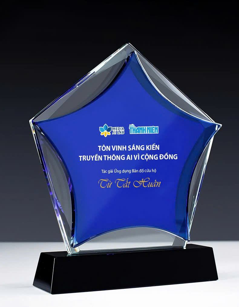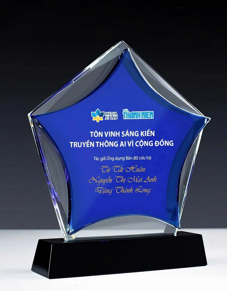Trong dịp này, Quatangcongnghe.vn hân hạnh cùng Báo Thanh Niên và Media AI Lab đồng hành trao tặng những chiếc cúp vinh danh đến 03 tác giả của Ứng dụng bản đồ cứu hộ. Được góp phần tôn vinh những người trẻ mang công nghệ để phụng sự đất nước, Quatangcongnghe.vn tự hào tiếp nối sứ mệnh kiến tạo giá trị nhân văn và thúc đẩy sáng tạo vì xã hội.