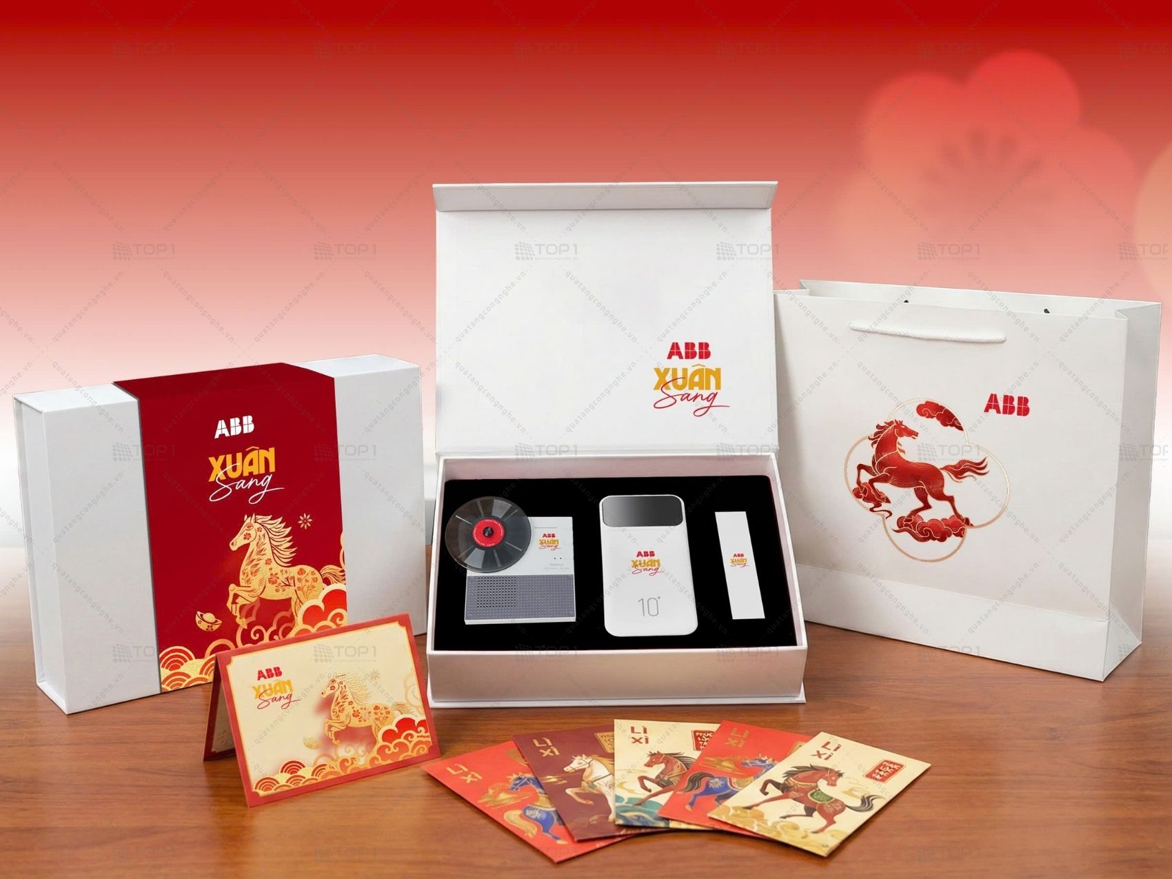 Thiết kế màu sắc theo tông màu nhận diện thương hiệu, quy cách đóng hộp quà tặng chỉnh chu, tạo ấn tượng cho người nhận.
