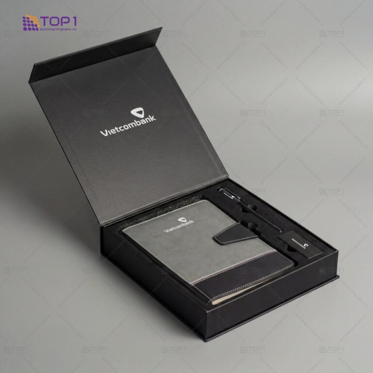 Bộ quà tặng được Quatangcongnghe.vn thiết kế túi, hộp quà tặng và in logo thương hiệu doanh nghiệp lên túi, hộp quà và sản phẩm, giúp dễ dàng nhận diện thương hiệu.