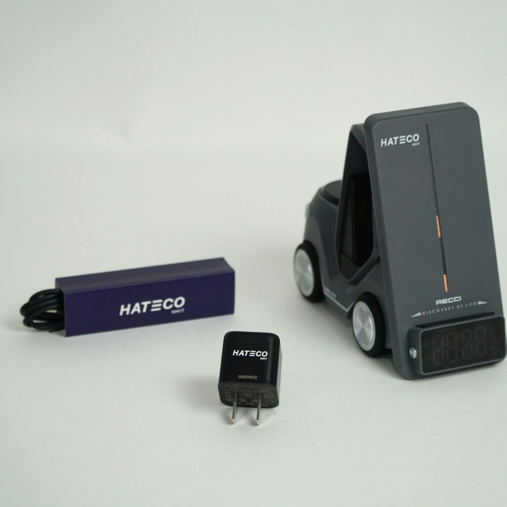 Tâm điểm của set quà là bộ sạc không dây 5 trong 1 Recci, thiết bị công nghệ hiện đại tích hợp khả năng sạc đồng thời cho điện thoại, tai nghe, đồng hồ thông minh.