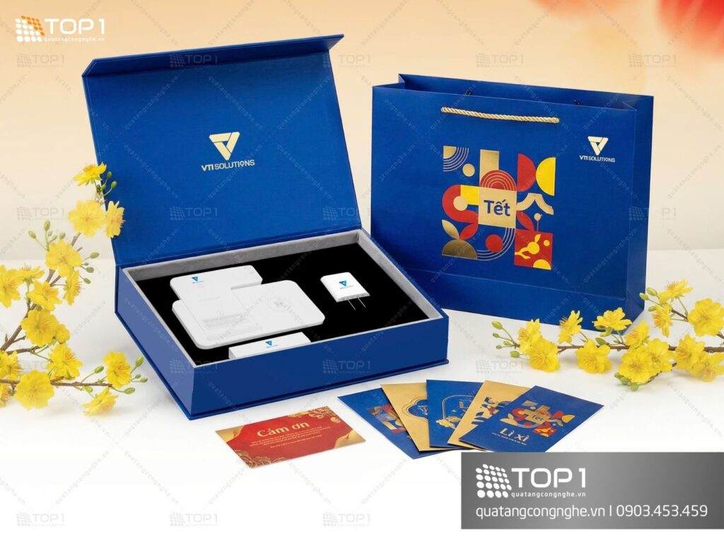 QT04 mang tên “Tết” là sự kết hợp giữa sản phẩm công nghệ hiện đại và thiết kế hộp sang trọng, tạo nên món quà tri ân đẳng cấp dành cho doanh nghiệp trong dịp năm mới.
