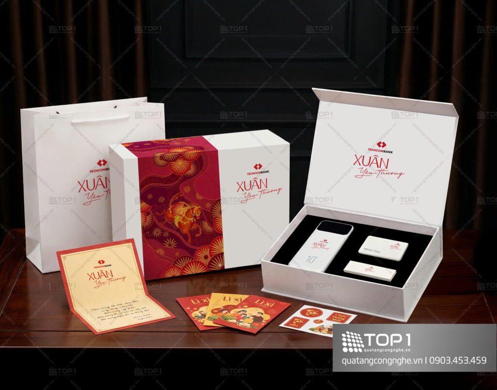 Set quà Tết cao cấp QT11 kết hợp giữa sản phẩm công nghệ hiện đại và thiết kế hộp sang trọng, tạo nên món quà tri ân đẳng cấp dành cho doanh nghiệp trong dịp năm mới.