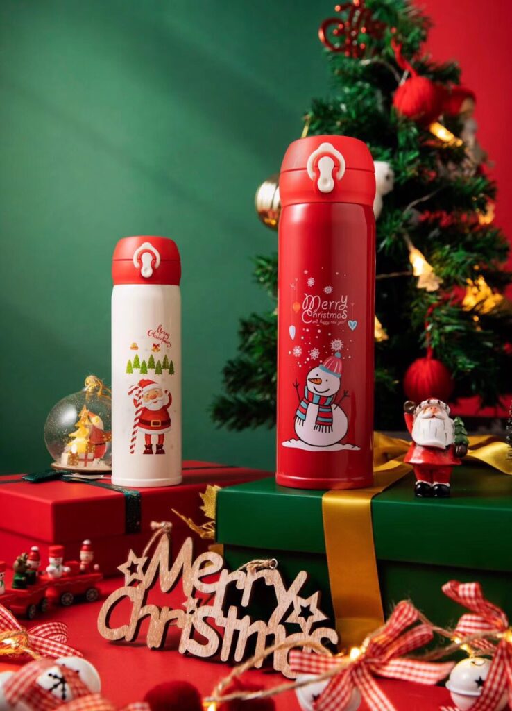 Bình giữ nhiệt với tông đỏ – trắng đặc trưng của mùa lễ hội là món quà được nhiều nhân viên yêu thích. Các họa tiết tuyết, người tuyết hoặc ông già Noel khiến chiếc bình trở nên nổi bật và mang cảm giác vui tươi ngay khi nhìn vào.